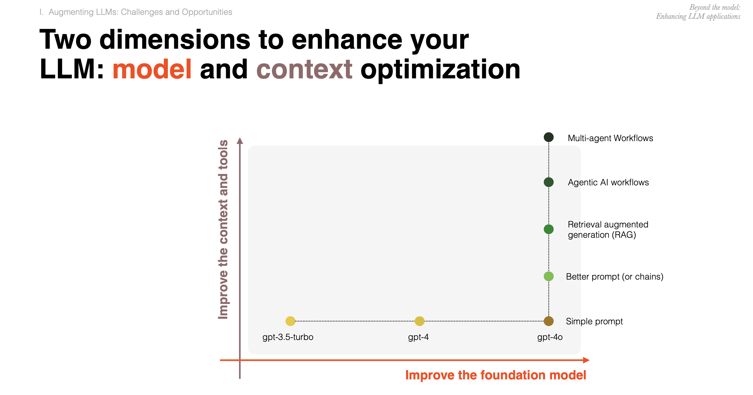 To me, and I assume to many other people too, AI is just the same as LLM (which apparently is not but I just don’t know the difference so I just use them interchangeably). There are many different models, newer and more powerful models as time goes by. But even with the same model, there are different skills such as few prompts, chain prompts, RAG, and so on that can greatly improve the results one gets. Below is a screenshot of a slide from Stanford Online CS230 (Lecture 8).