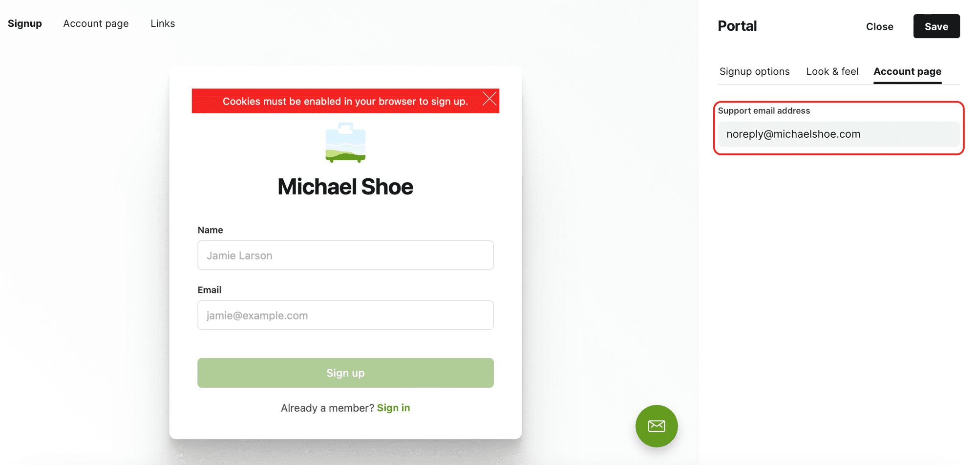 Membership -> Portal settings -> Account page