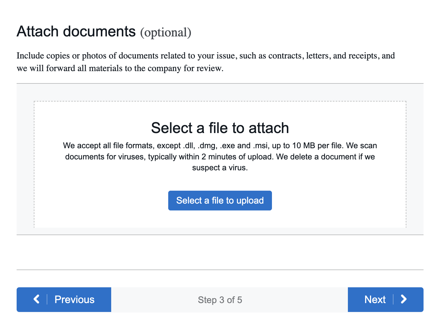 Then there is the sign up process which doesn't require too much info and is very straightforward. Then you go to the file process which has 5 steps to follow. Do notice that the site doesn't really have a "save" option so it is better to prepare in advance and file the complaint in one sitting.